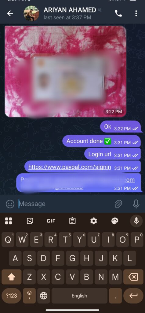 📩 অর্ডার করতে চান? এখনই ” Telegram Support Id ” তে মেসেজ দিন & Verified PayPal নিন! 🚀